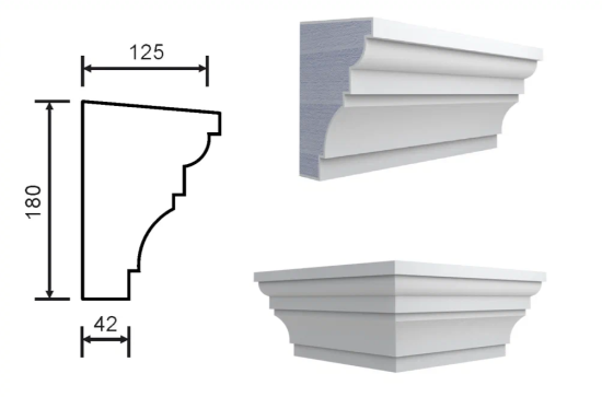 Наши карнизы из пенополистирола легки и не создают дополнительной нагрузки на конструкции. Специальное мраморно-акриловое покрытие обеспечивает защиту от неблагоприятных погодных условий и механических повреждений, благодаря чему карнизы сохраняют свой привлекательный вид даже в самых сложных условиях. Декоративные карнизы из пенопласта с защитным покрытием — это идеальное решение для оформления фасада любого здания. Они выглядят стильно и доступны по цене.
