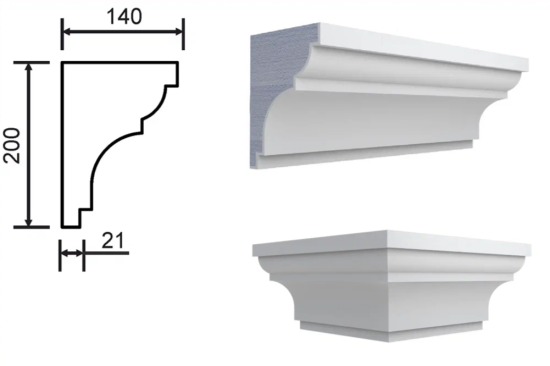 Можно выделить две основные категории подкровельных карнизов: с квадратным сечением, где обе монтажные плоскости примерно равны по ширине, и с прямоугольным сечением, где одна сторона шире другой. Использование квадратного сечения помогает создать плавный переход между линией стены и крыши, тогда как прямоугольное сечение позволяет акцентировать внимание либо на стене, либо на кровле, в зависимости от того, какая из плоскостей шире, придавая зданию интересный визуальный акцент.
