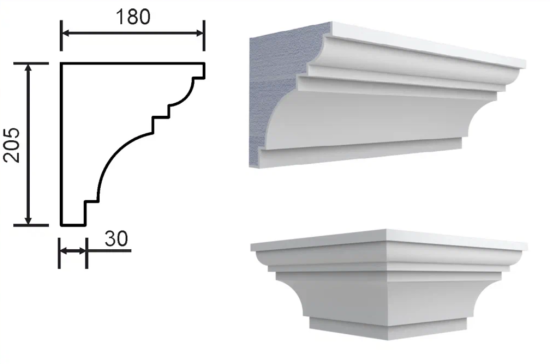 Можно выделить две основные категории подкровельных карнизов: с квадратным сечением, где обе монтажные плоскости примерно равны по ширине, и с прямоугольным сечением, где одна сторона шире другой. Использование квадратного сечения помогает создать плавный переход между линией стены и крыши, тогда как прямоугольное сечение позволяет акцентировать внимание либо на стене, либо на кровле, в зависимости от того, какая из плоскостей шире, придавая зданию интересный визуальный акцент.