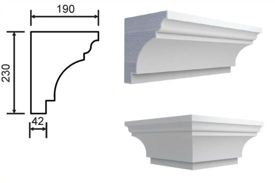 Можно выделить две основные категории подкровельных карнизов: с квадратным сечением, где обе монтажные плоскости примерно равны по ширине, и с прямоугольным сечением, где одна сторона шире другой. Использование квадратного сечения помогает создать плавный переход между линией стены и крыши, тогда как прямоугольное сечение позволяет акцентировать внимание либо на стене, либо на кровле, в зависимости от того, какая из плоскостей шире, придавая зданию интересный визуальный акцент.