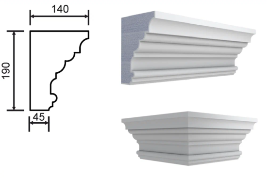 Можно выделить две основные категории подкровельных карнизов: с квадратным сечением, где обе монтажные плоскости примерно равны по ширине, и с прямоугольным сечением, где одна сторона шире другой. Использование квадратного сечения помогает создать плавный переход между линией стены и крыши, тогда как прямоугольное сечение позволяет акцентировать внимание либо на стене, либо на кровле, в зависимости от того, какая из плоскостей шире, придавая зданию интересный визуальный акцент.