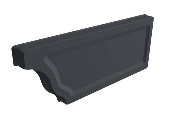 Устанавливается на торцах желоба. Конструкция обеспечивает постоянную фиксацию, герметичность и жесткость желоба. Может быть дополнительно зафиксирована герметиком или заклепками.