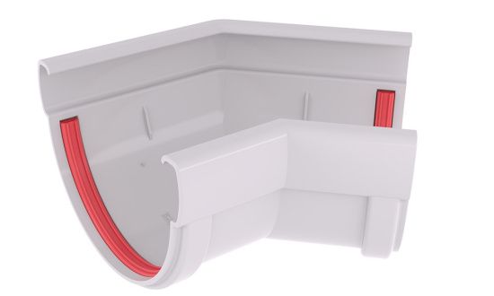 Угол желоба соединяет два желоба под углом 135° как на внешних, так и на внутренних углах фасада.