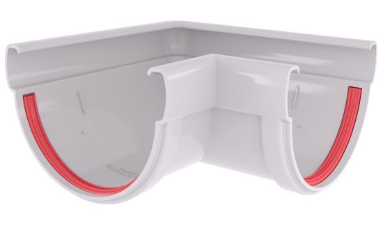 Угол желоба соединяет два желоба под углом 90° как на внешних, так и на внутренних углах фасада.