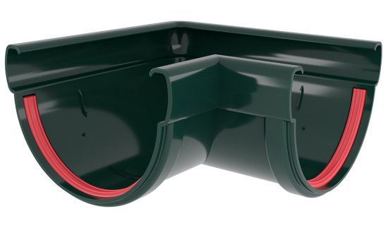 Угол желоба соединяет два желоба под углом 90° как на внешних, так и на внутренних углах фасада.