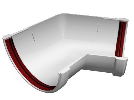 Угол желоба соединяет два желоба под углом 135°, как на внешних, так и на внутренних углах фасада.