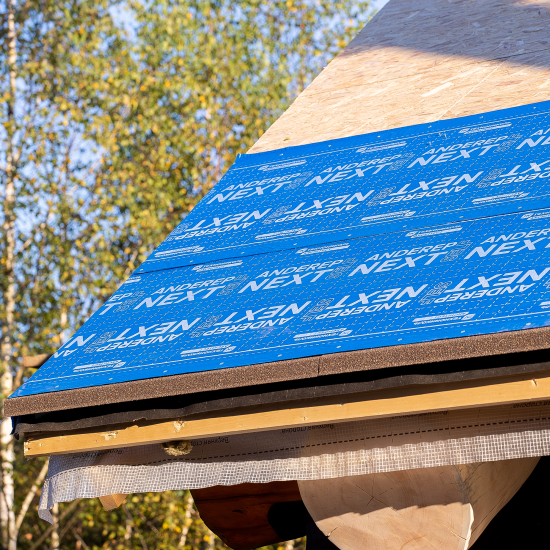 Нескользящая верхняя поверхность подкладочного ковра позволяет монтажникам безопасно передвигаться по уже смонтированному материалу.