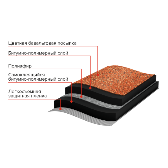 Декоративный рулонный кровельный самоклеящийся битумно-полимерный материал. Рулонную черепицу ТЕХНОНИКОЛЬ получают путем пропитки прочной полиэфирной основы битумно-полимерным вяжущим, с последующим нанесением на нижнюю сторону полотна самоклеящегося слоя. В качестве защитных покрытий применяют с лицевой стороны цветную крупнозернистую посыпку - базальт в виде декоративного рисунка, с нижней стороны полотна антиадгезионную полимерную пленку.