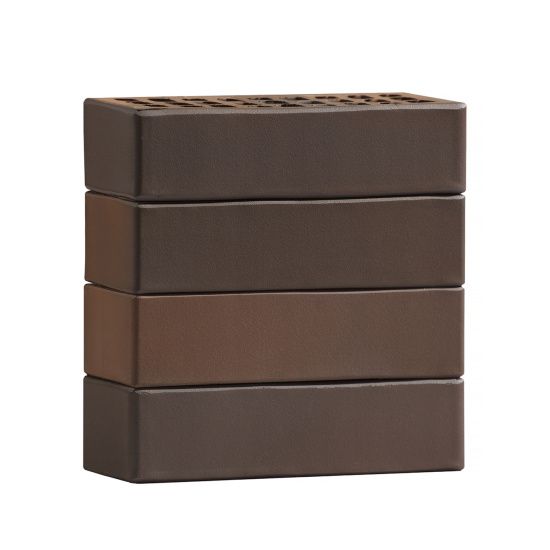 Кирпич «Амур» имеет благородную и сдержанную гладкую поверхность, где цвет плавно перетекает от почти черного до оттенка молочного шоколада. Такой керамический материал отлично смотрится в кладке как на светлом, так и на темном кладочном растворе. Кирпич устойчив к внешнему воздействию (перепадам температуры, повышенной влажности).