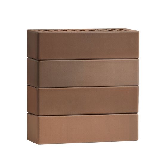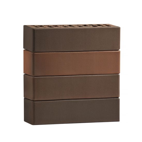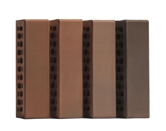 Лицевой кирпич с гладкой поверхностью производится по технологии флэш-обжига (горение газа в условиях низкого содержания кислорода), что позволяет без окрашивания поверхности получить богатую палитру красно-коричневых оттенков как в одном изделии, так и сочетая их в кладке.
